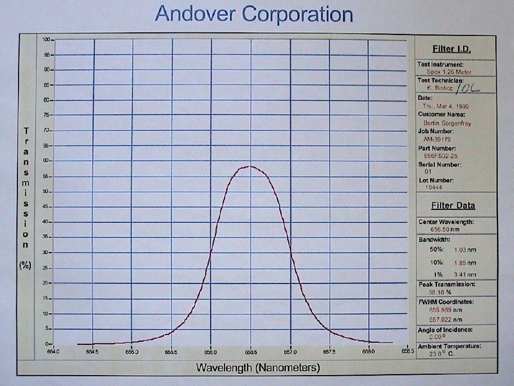 24mm diameter, Bandwith at 50% Transmission: 1.04nm; Peak Transmission 53.08%,